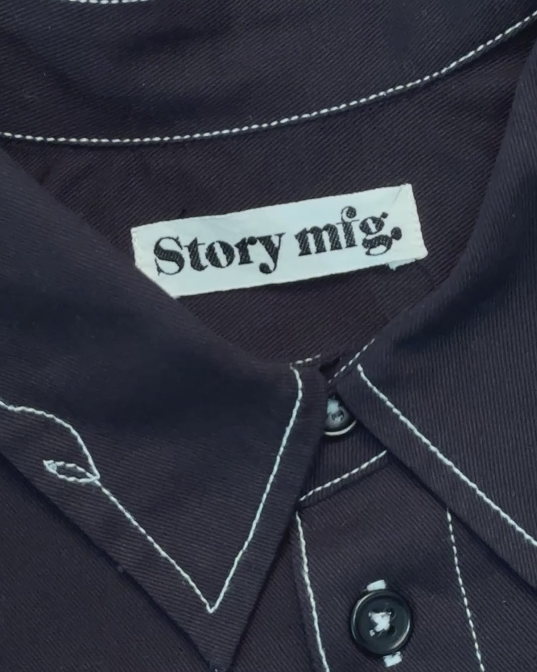 A relaxed fitting long sleeve shirt made from an organic cotton. Details include a regular collar, buttoned cuffs, box pleat on the rear yoke, curved hem and a multi-pocket construction on the front. This jacket is part of our Wonky-Wear capsule, which celebrates the wobbly, wonky and naive details found in vintage workwear, using single needle machines.