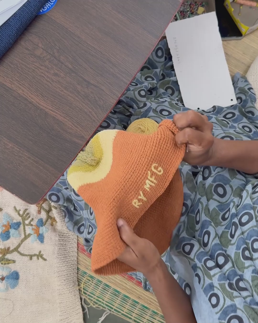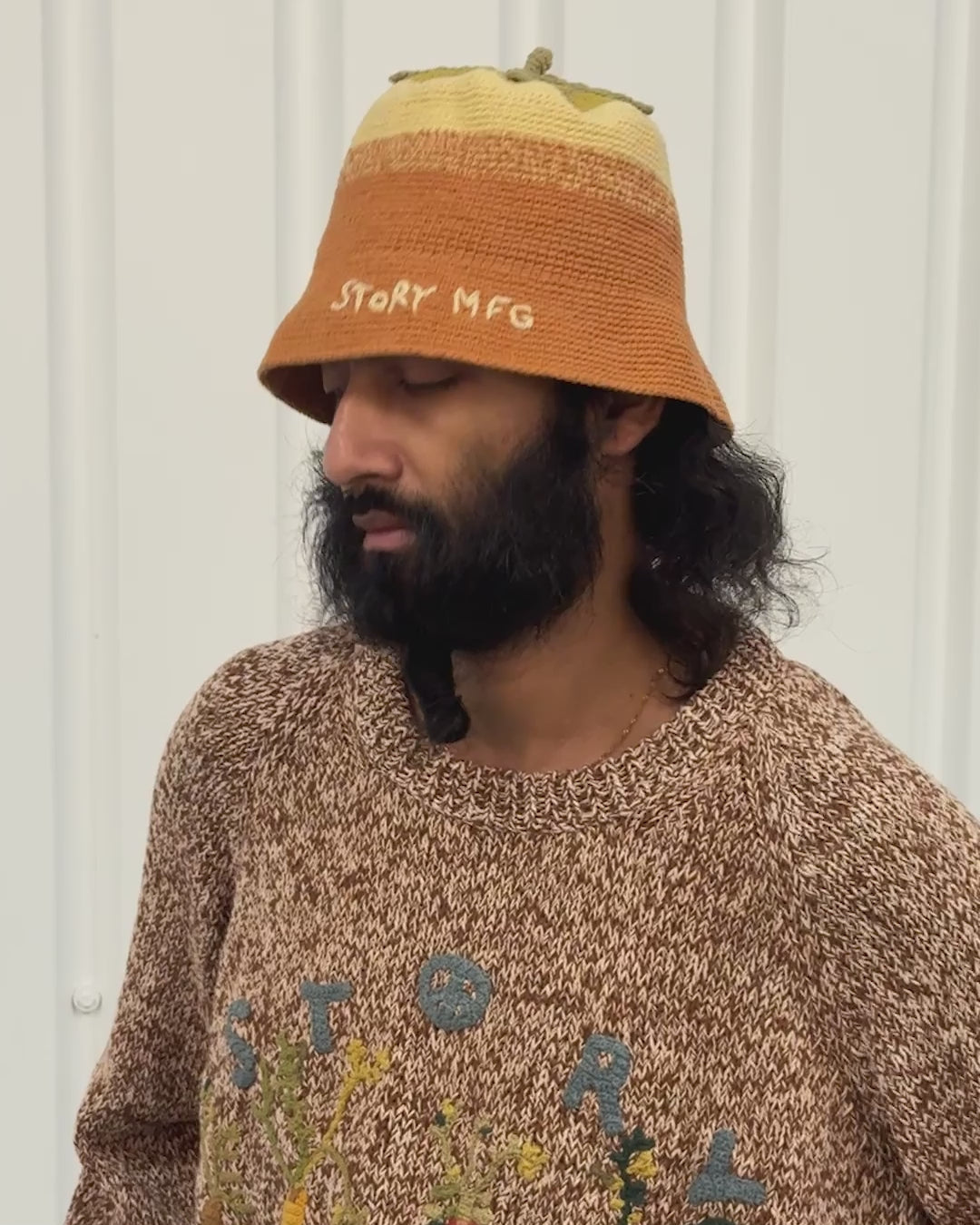 The Brew Hat is hand crocheted using organic cotton, and completely naturally dyed by hand. Features a hand crochet stem at the crown and chain stitch hand embroidery on the brim.