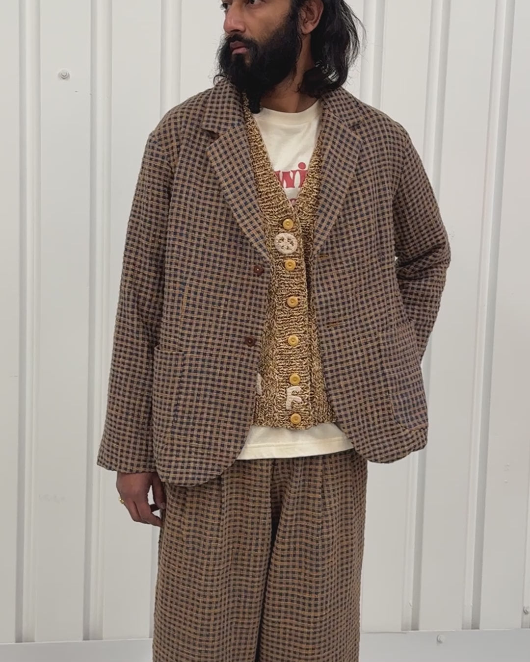 The Shale Jacket is our take on a classic blazer, and makes up part of our soft tailoring collection. Cut from our handwoven cotton checked Wobbly Waffle fabric, the blazer is single breasted and double buttoned, with a notch lapel and half lining.